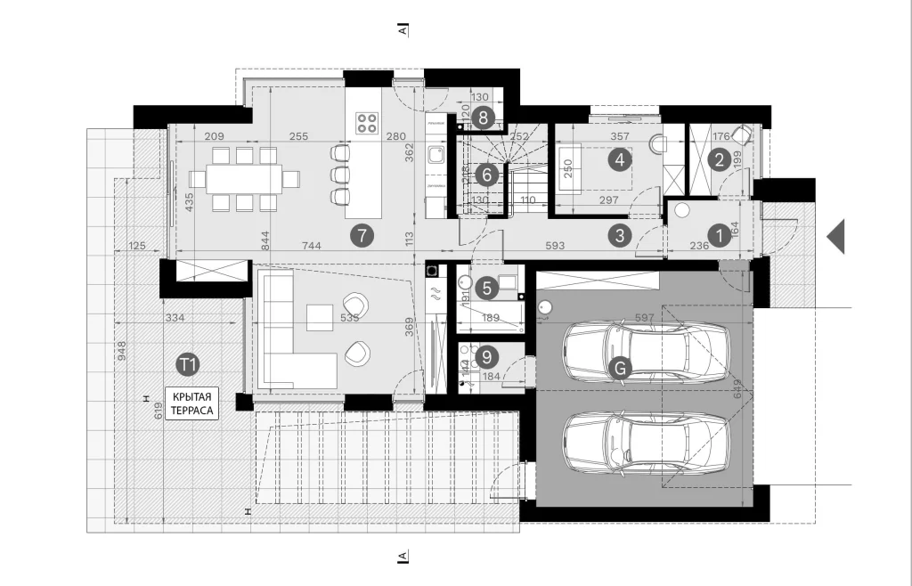 Функциональная планировка дома обеспечивает удобное зонирование, максимальное естественное освещение и комфорт для всей семьи. Каждое решение направлено на создание гармоничного пространства, в котором будет приятно жить и отдыхать.