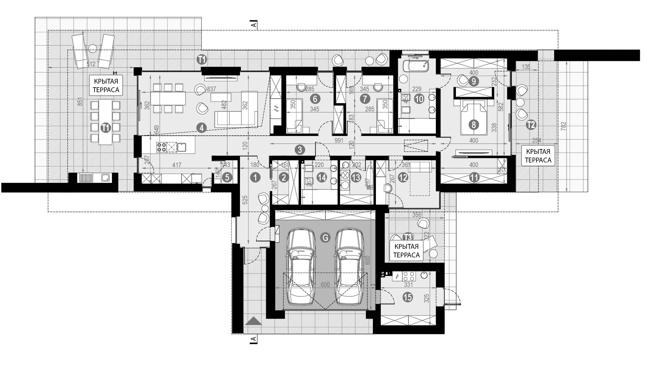Функциональная планировка дома обеспечивает удобное зонирование, максимальное естественное освещение и комфорт для всей семьи. Каждое решение направлено на создание гармоничного пространства, в котором будет приятно жить и отдыхать.