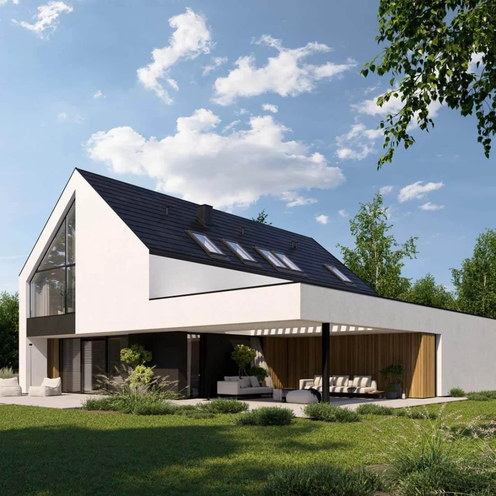 Этот дом — воплощение современного стиля, где каждая деталь продумана до мелочей. Лаконичные формы, чистые линии и тщательно подобранные материалы создают элегантный и функциональный облик, который подчеркнет ваш вкус и статус.
