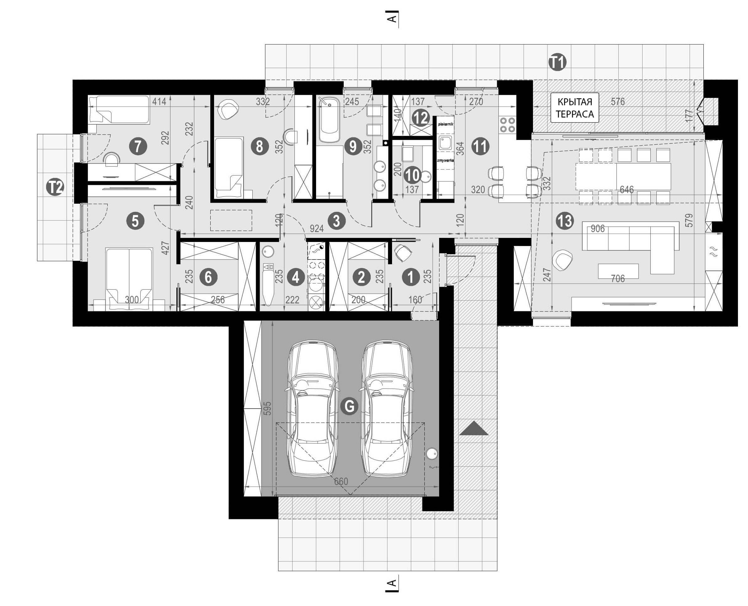 Функциональная планировка дома обеспечивает удобное зонирование, максимальное естественное освещение и комфорт для всей семьи. Каждое решение направлено на создание гармоничного пространства, в котором будет приятно жить и отдыхать.