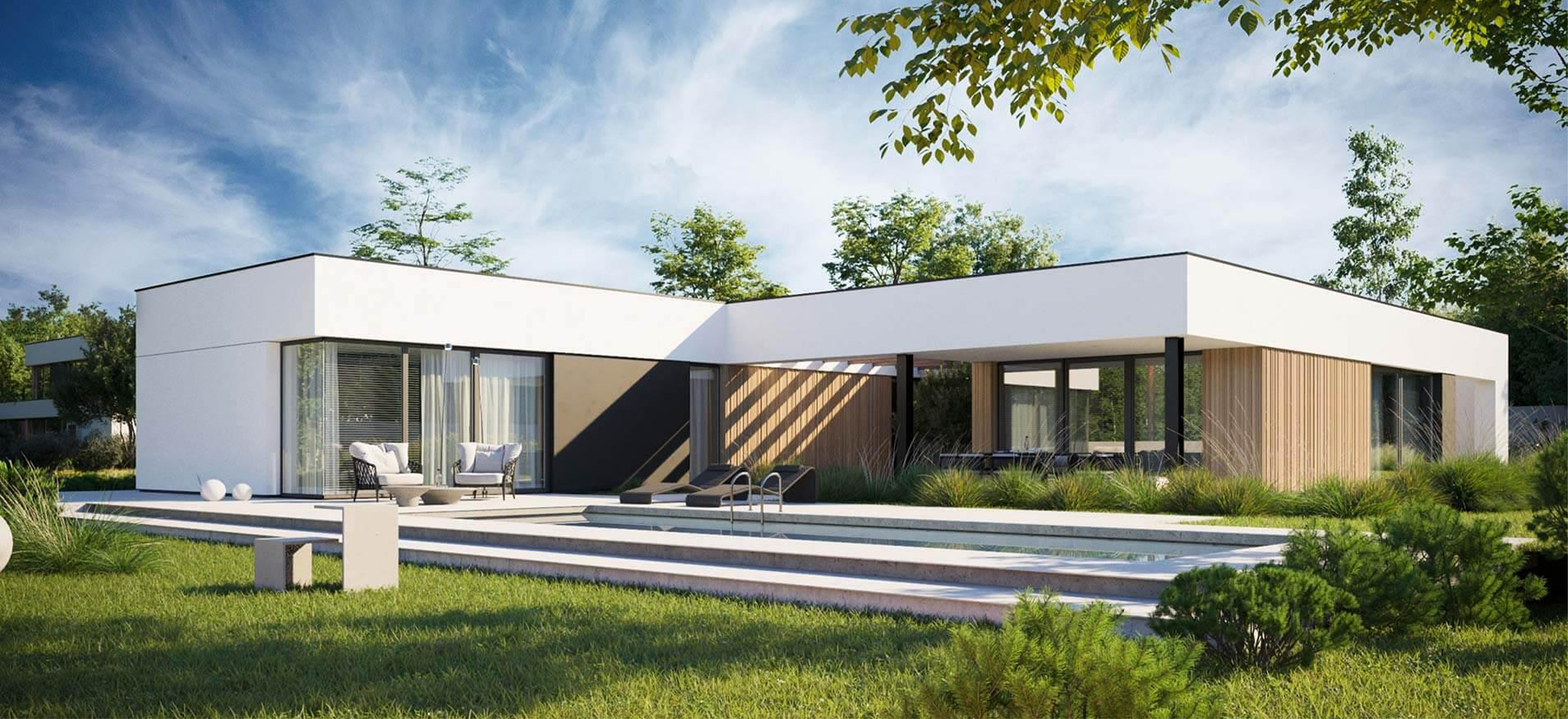 Этот дом — воплощение современного стиля, где каждая деталь продумана до мелочей. Лаконичные формы, чистые линии и тщательно подобранные материалы создают элегантный и функциональный облик, который подчеркнет ваш вкус и статус.