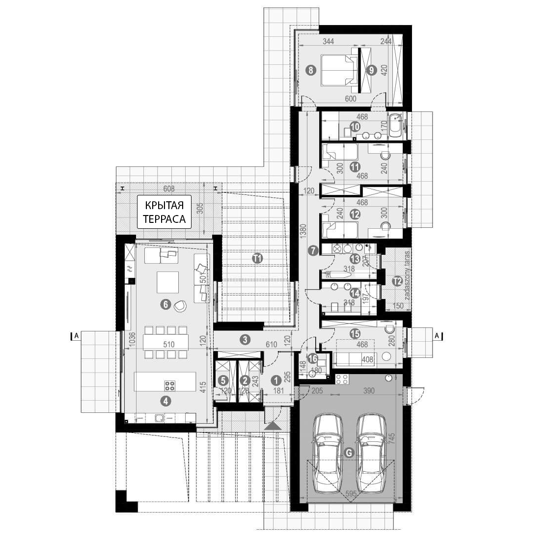 Одноэтажный дом с гаражом