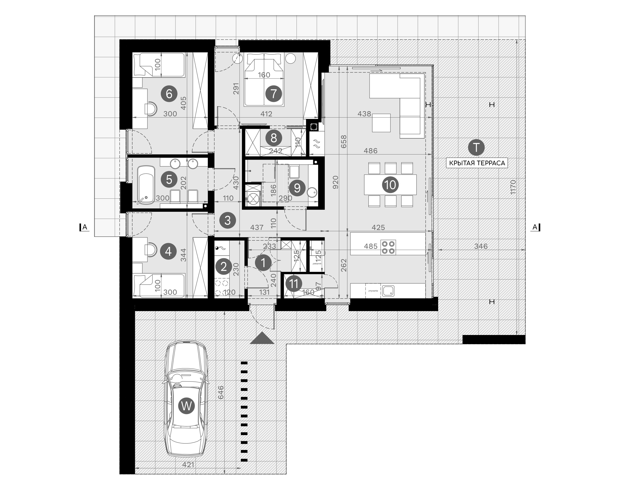 Функциональная планировка дома обеспечивает удобное зонирование, максимальное естественное освещение и комфорт для всей семьи. Каждое решение направлено на создание гармоничного пространства, в котором будет приятно жить и отдыхать.