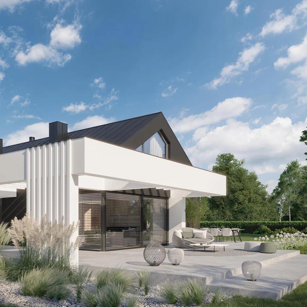 Этот дом — воплощение современного стиля, где каждая деталь продумана до мелочей. Лаконичные формы, чистые линии и тщательно подобранные материалы создают элегантный и функциональный облик, который подчеркнет ваш вкус и статус.
