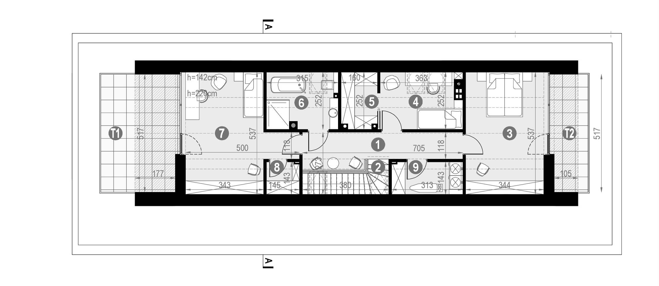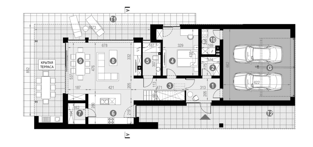 Функциональная планировка дома обеспечивает удобное зонирование, максимальное естественное освещение и комфорт для всей семьи. Каждое решение направлено на создание гармоничного пространства, в котором будет приятно жить и отдыхать.
