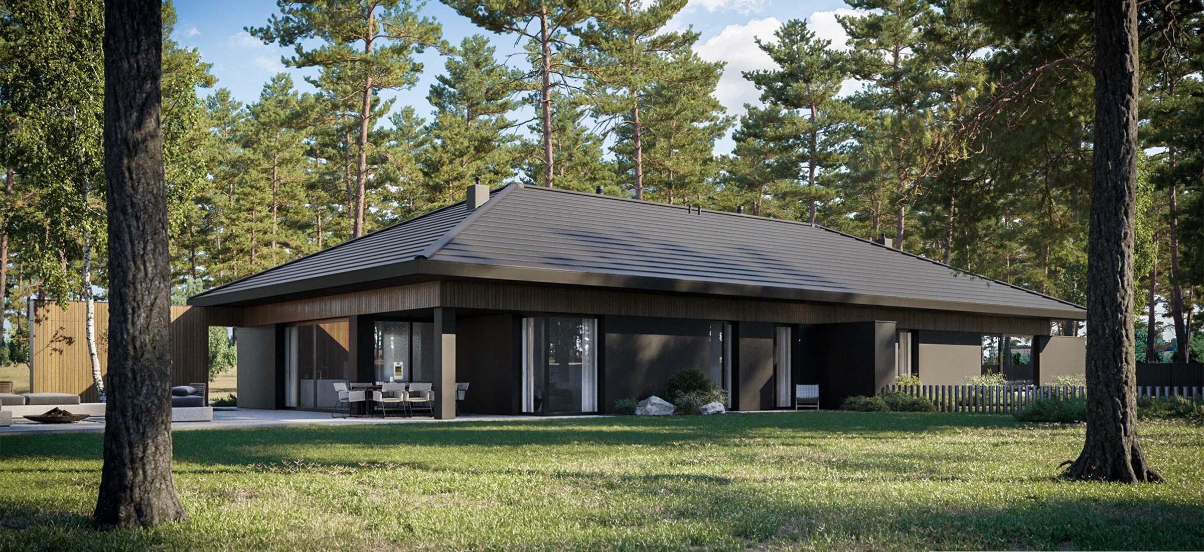 Этот дом — воплощение современного стиля, где каждая деталь продумана до мелочей. Лаконичные формы, чистые линии и тщательно подобранные материалы создают элегантный и функциональный облик, который подчеркнет ваш вкус и статус.