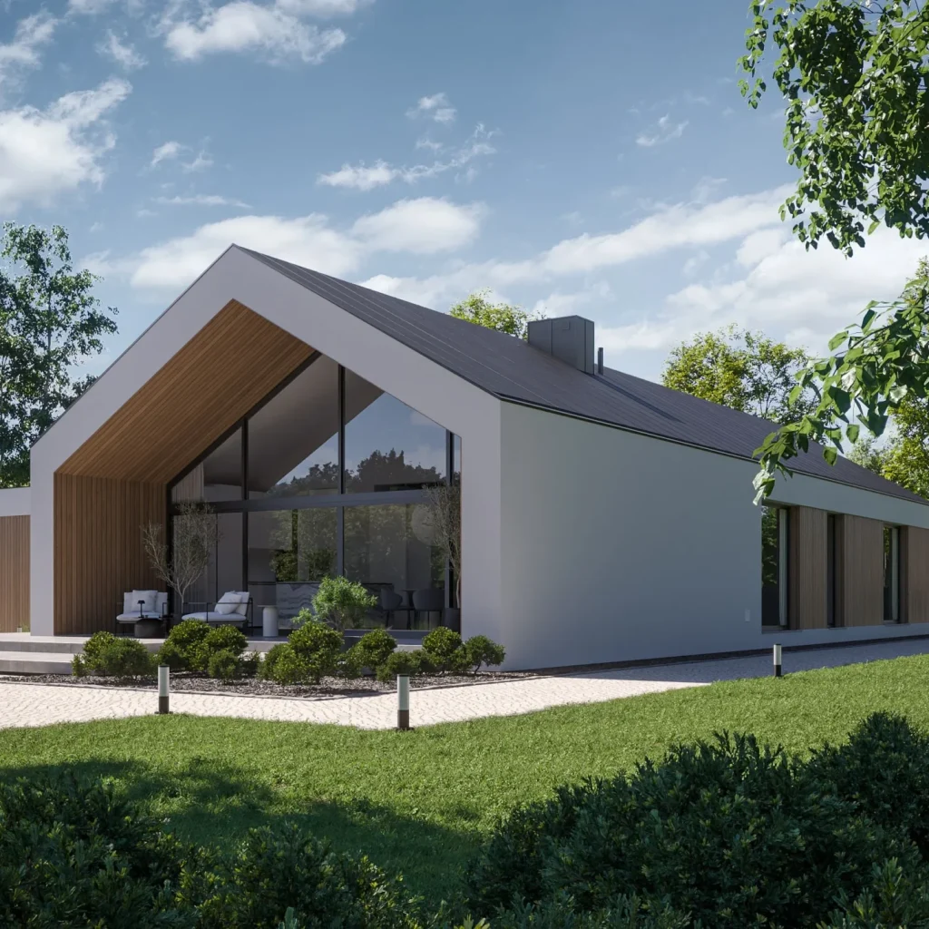 Этот дом — воплощение современного стиля, где каждая деталь продумана до мелочей. Лаконичные формы, чистые линии и тщательно подобранные материалы создают элегантный и функциональный облик, который подчеркнет ваш вкус и статус.