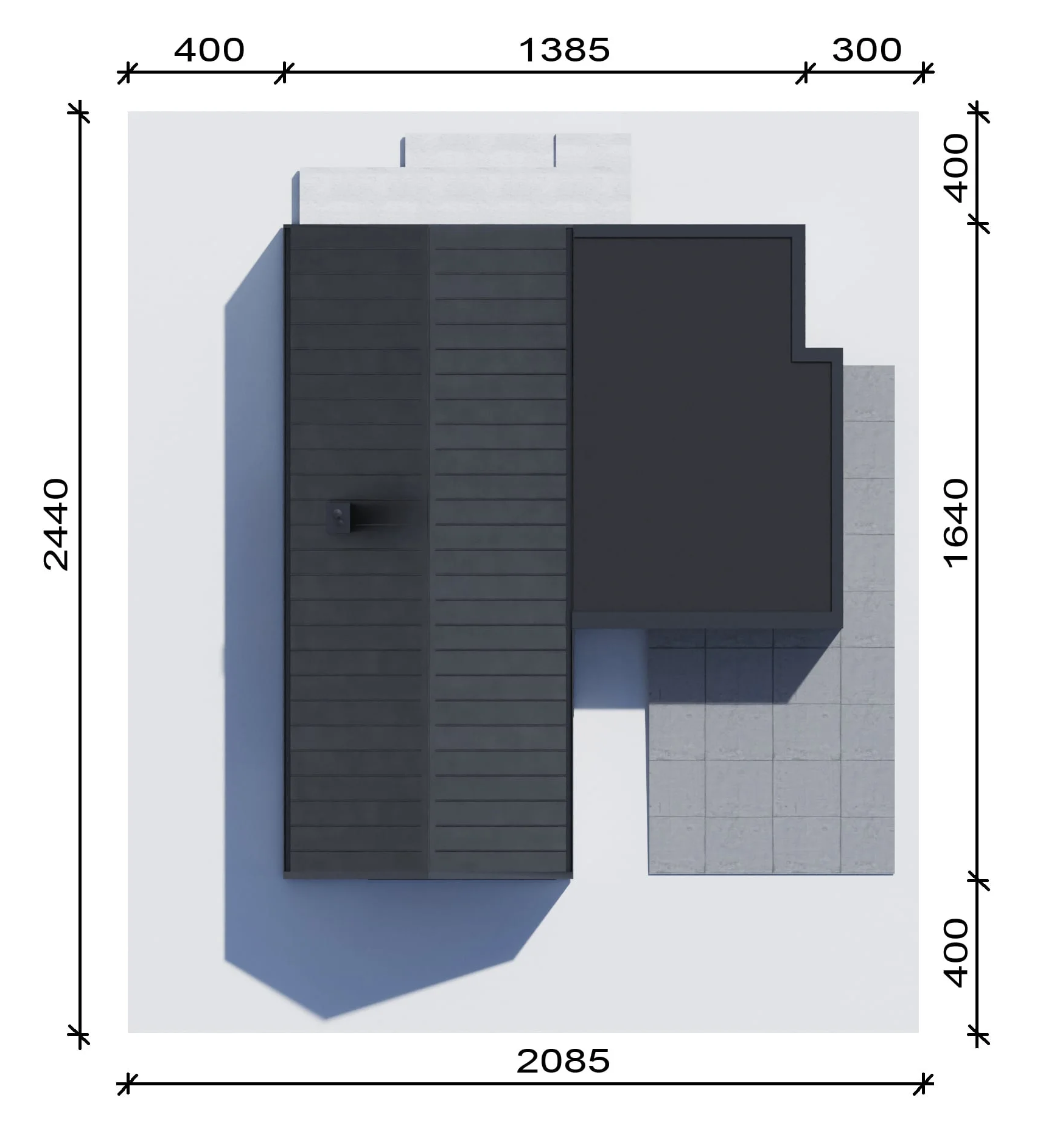 Полезная площадь — 108,95 м² Площадь гаража — 23,4 м² Минимальный размер участка — 20,85 x 24,40 м