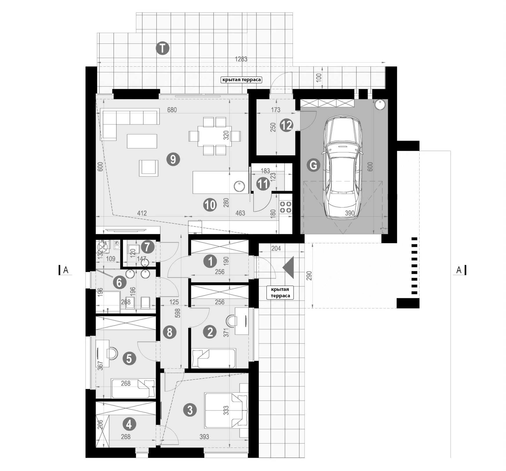 Функциональная планировка дома обеспечивает удобное зонирование, максимальное естественное освещение и комфорт для всей семьи. Каждое решение направлено на создание гармоничного пространства, в котором будет приятно жить и отдыхать.