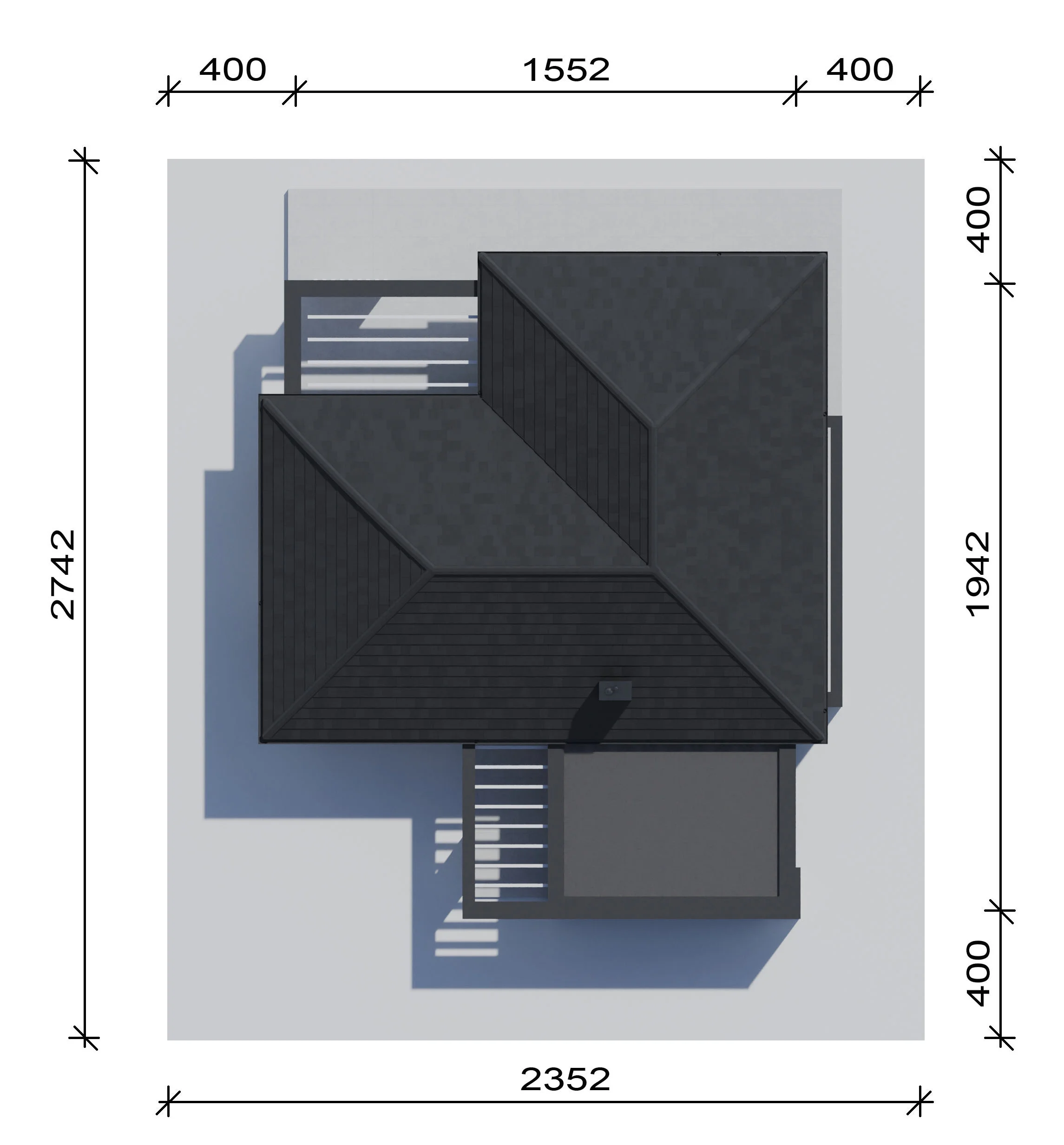 Полезная площадь — 138,15 м² Площадь гаража — 39,6 м² Минимальный размер участка — 23,52 x 27,42 м