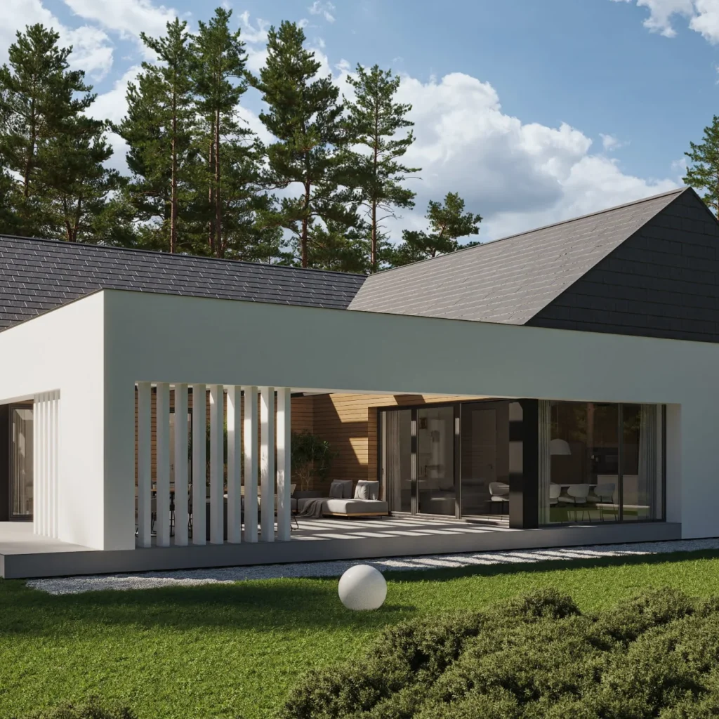 Этот дом — воплощение современного стиля, где каждая деталь продумана до мелочей. Лаконичные формы, чистые линии и тщательно подобранные материалы создают элегантный и функциональный облик, который подчеркнет ваш вкус и статус.