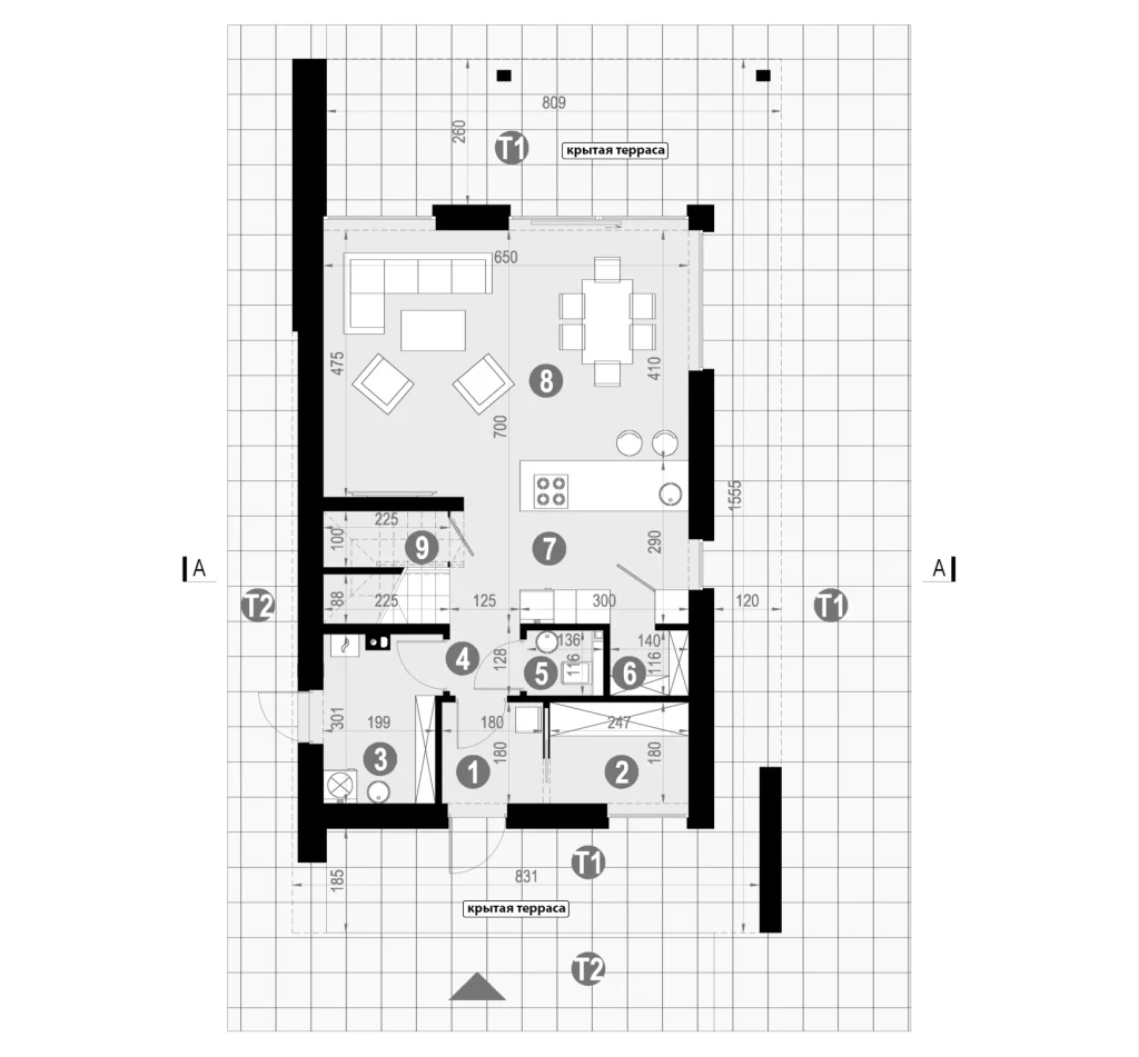 Функциональная планировка дома обеспечивает удобное зонирование, максимальное естественное освещение и комфорт для всей семьи. Каждое решение направлено на создание гармоничного пространства, в котором будет приятно жить и отдыхать.