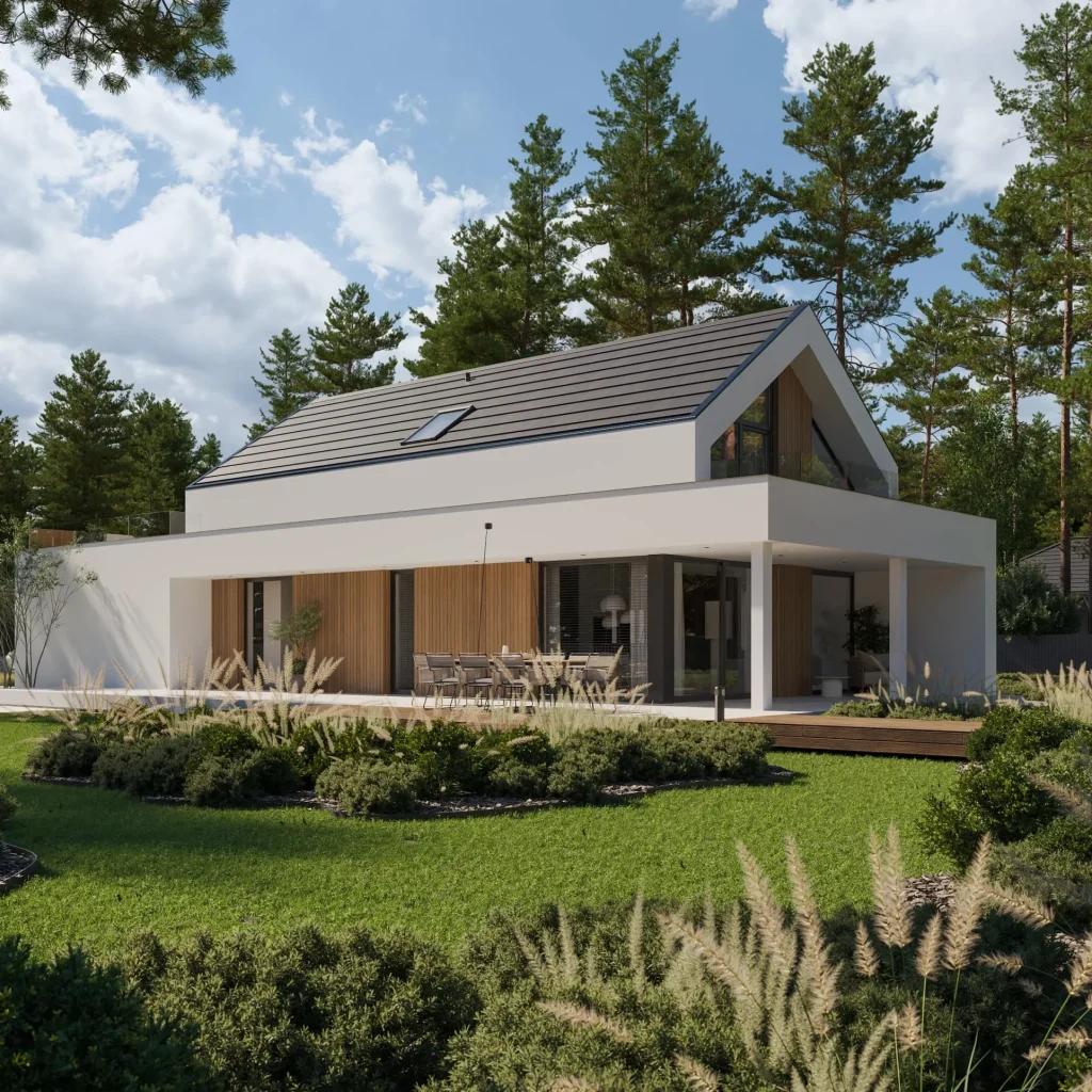 Этот дом — воплощение современного стиля, где каждая деталь продумана до мелочей. Лаконичные формы, чистые линии и тщательно подобранные материалы создают элегантный и функциональный облик, который подчеркнет ваш вкус и статус.