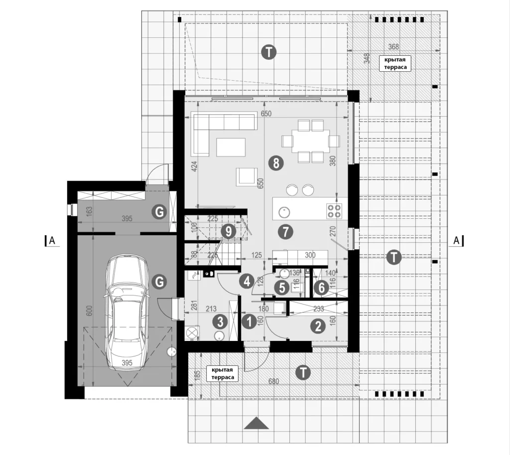 Функциональная планировка дома обеспечивает удобное зонирование, максимальное естественное освещение и комфорт для всей семьи. Каждое решение направлено на создание гармоничного пространства, в котором будет приятно жить и отдыхать.