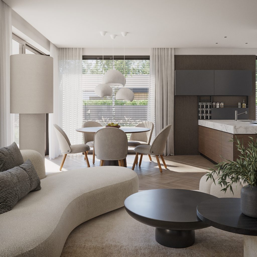 Этот дом — воплощение современного стиля, где каждая деталь продумана до мелочей. Лаконичные формы, чистые линии и тщательно подобранные материалы создают элегантный и функциональный облик, который подчеркнет ваш вкус и статус.