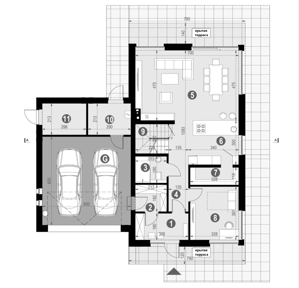 Функциональная планировка дома обеспечивает удобное зонирование, максимальное естественное освещение и комфорт для всей семьи. Каждое решение направлено на создание гармоничного пространства, в котором будет приятно жить и отдыхать.