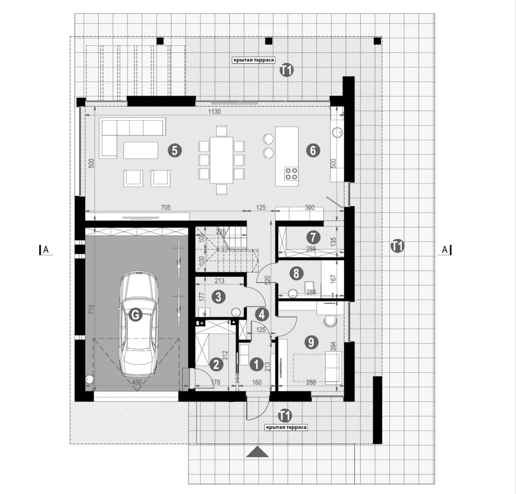 Функциональная планировка дома обеспечивает удобное зонирование, максимальное естественное освещение и комфорт для всей семьи. Каждое решение направлено на создание гармоничного пространства, в котором будет приятно жить и отдыхать.