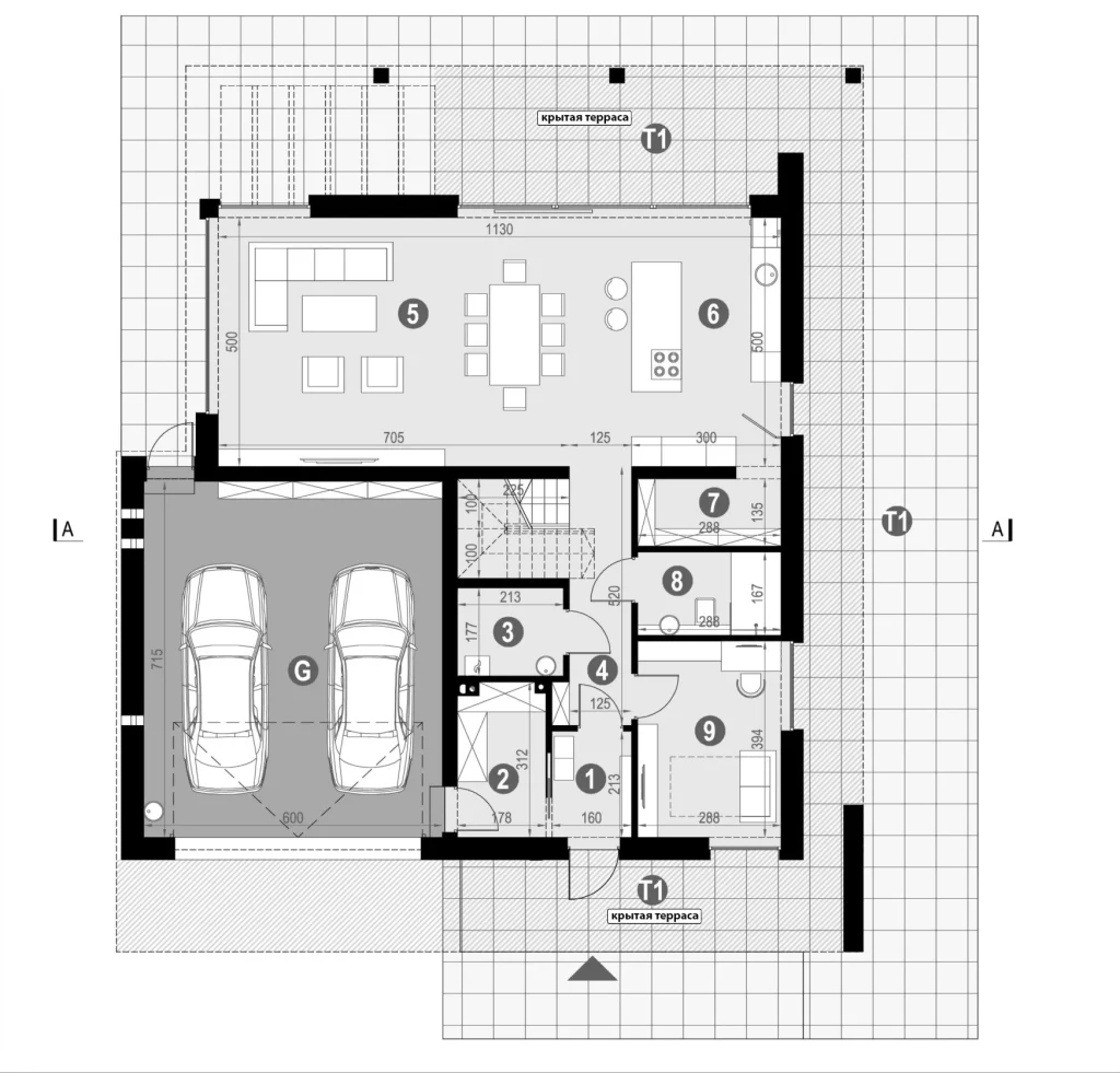 Функциональная планировка дома обеспечивает удобное зонирование, максимальное естественное освещение и комфорт для всей семьи. Каждое решение направлено на создание гармоничного пространства, в котором будет приятно жить и отдыхать.